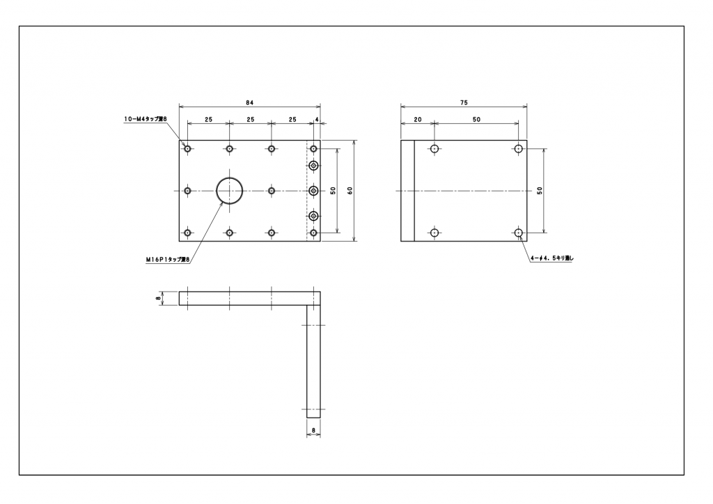 ・取付穴   :M16 P1、10-M4 ピッチ25 50×75位置