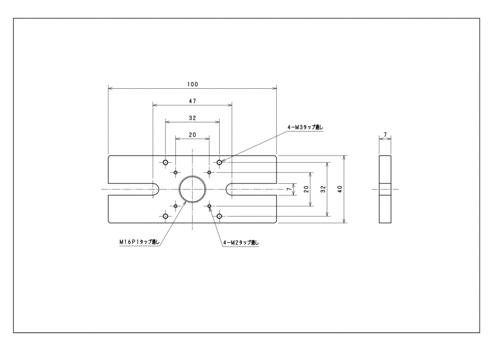 ・タップ穴:1-M16 P1 中央、4-M2 □20位置、4-M3 □32位置