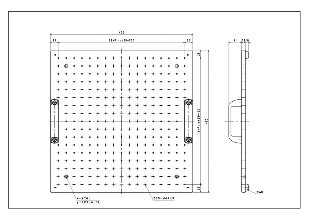アルミ製ブレッドボード OPB-45454G | 04 ベース・ボード・プレート | ベース | 光学機器の設計・開発・製造 – ツクモ工学