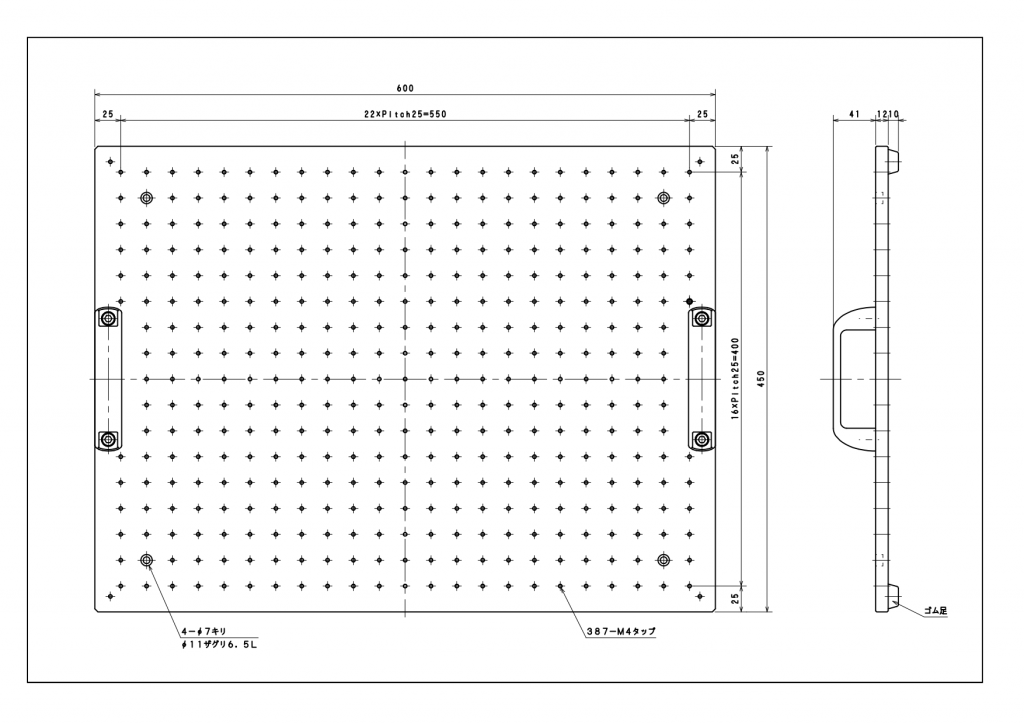 ・固定穴    :4-φ6.5キリ φ11ザグリ 350×500位置(M6キャップボルト用)