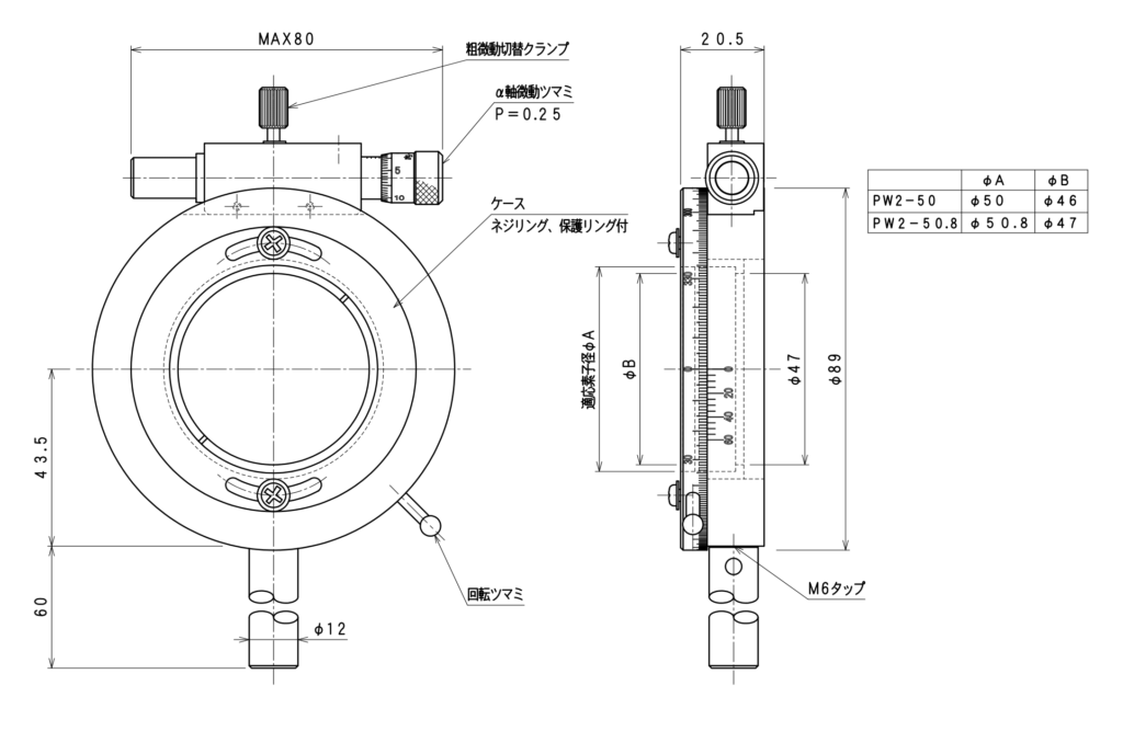 微調式偏光子ホルダ PW2-50.8 | 05 偏光子 | ホルダ | 光学機器の設計・開発・製造 – ツクモ工学