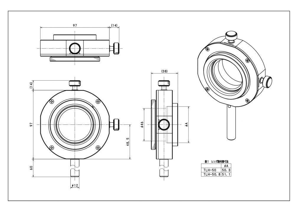 3軸調整付きレンズホルダ TLH-50 | 02 レンズ | ホルダ | 光学機器の設計・開発・製造 – ツクモ工学