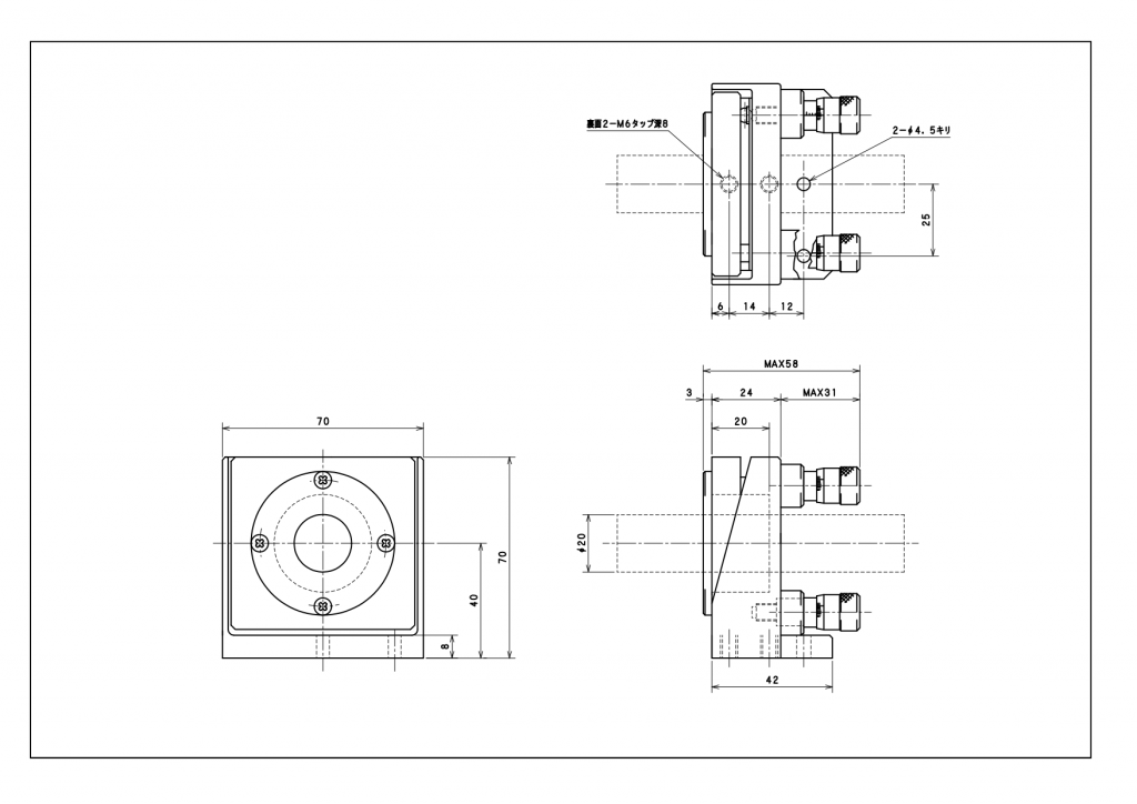 ・固定穴    :2-φ4.5キリピッチ25(M4ボルト用)