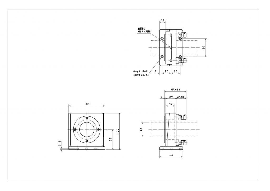 ・固定穴    :4-φ4.5キリ φ8ザグリ 深4.5 □50位置(M4キャップボルト用)