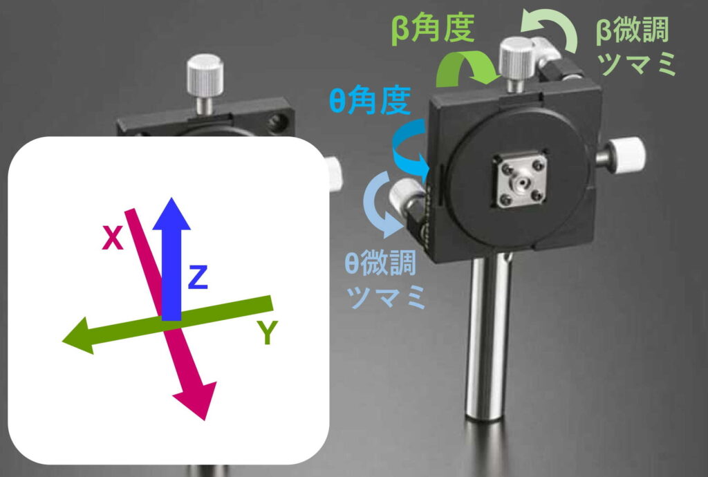 ・YZ軸調整に加え、微調ネジ調整のキネマティック機構によるあおり角度(角度 βθ)も調整できます。