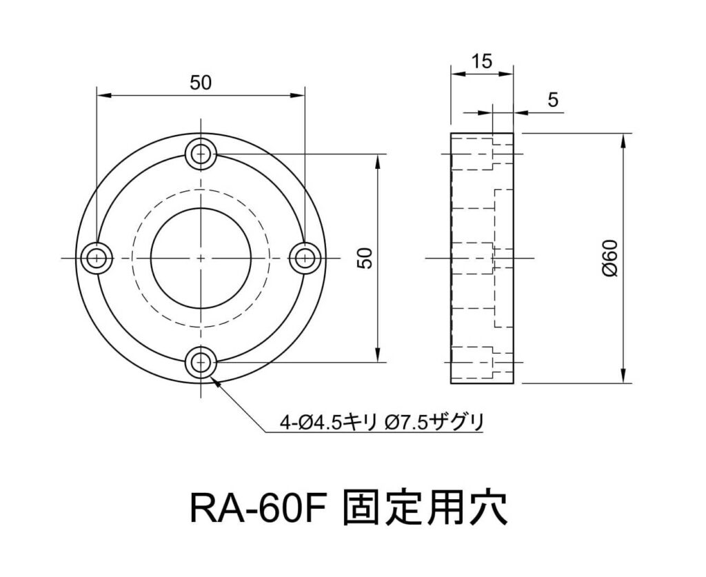 ・RA-60Fのネジ止めの際は、ステージ面を回転して貫通穴(φ7.5)を移動させて、下側部品の穴が上方から見えるようにしてください。