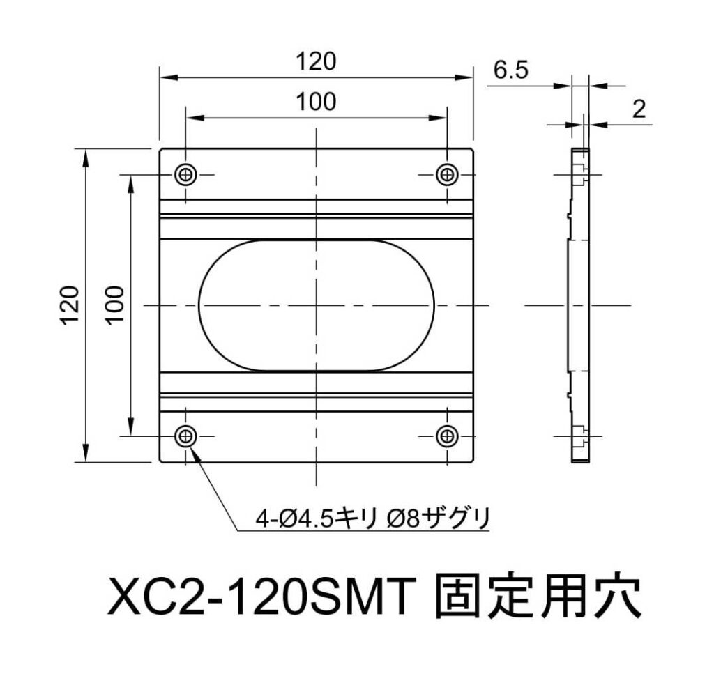 ・固定穴(底面)    :4-φ4.5キリ φ8ザグリ 深4.5 □100位置(M4キャップボルト用)