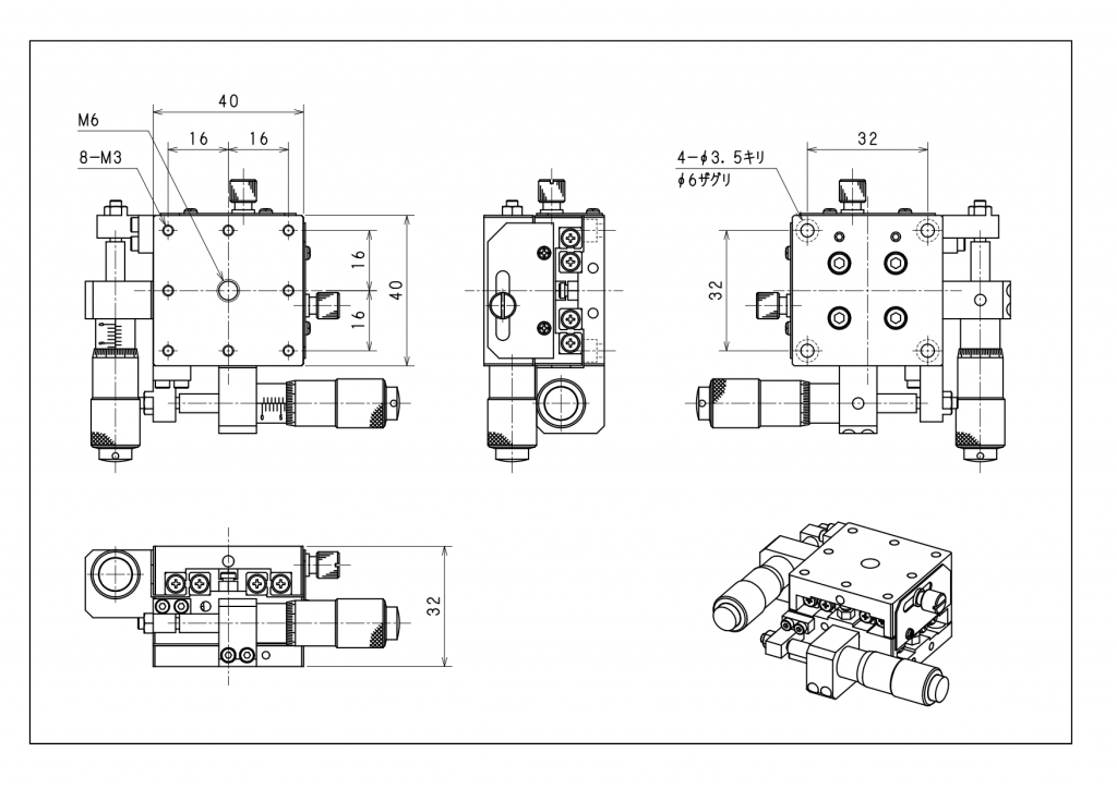 ・駆動方式に、マイクロメータヘッドを利用し微細な調整が可能です。