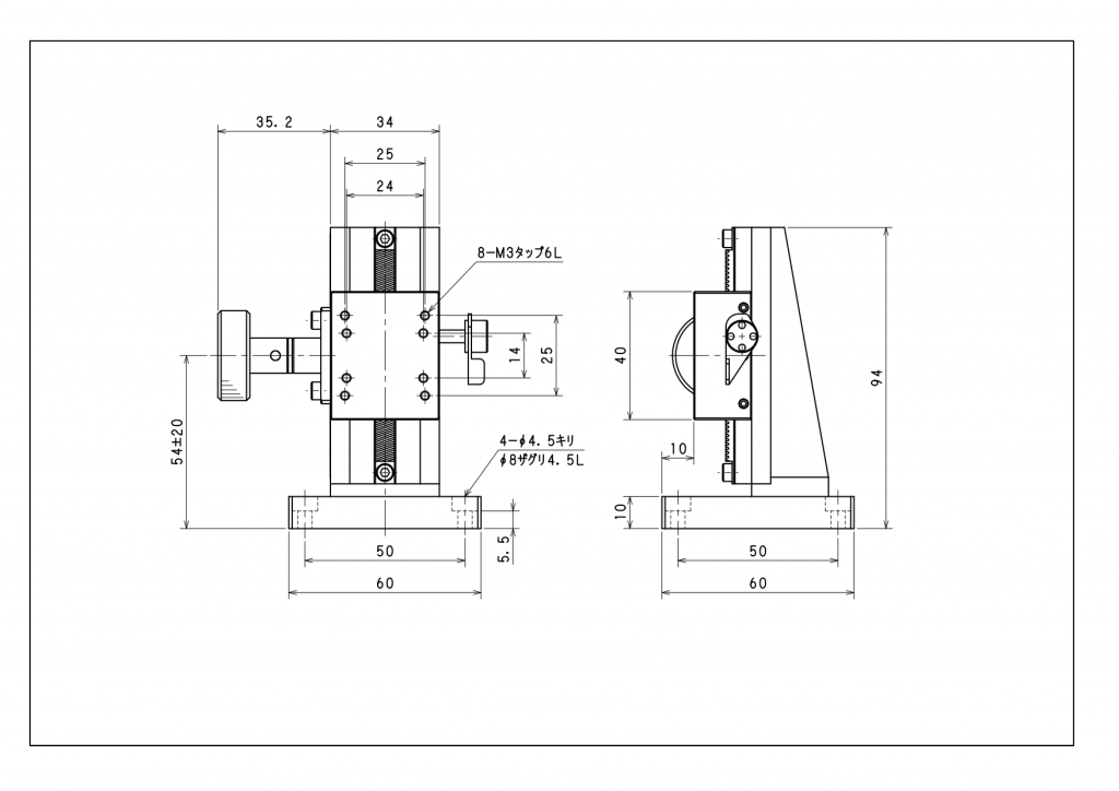 ・取付穴(ステージ面):4-M3 14×24位置、4-M3 □25位置