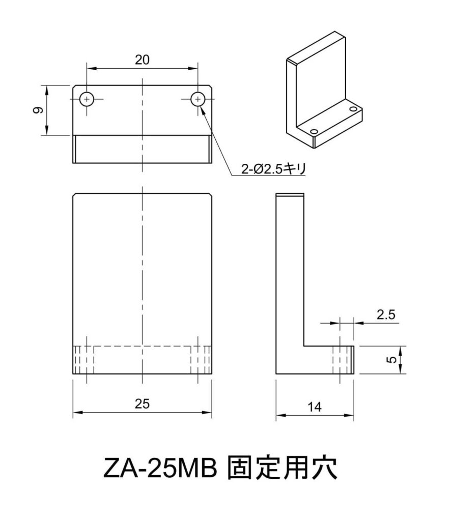 ・固定穴(底面)   :2-φ2.5キリ ピッチ20(M2ボルト用)
