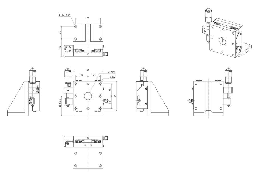 ・取付穴(ステージ面):1-M16 P1 中央、8-M4 ピッチ25 □50位置