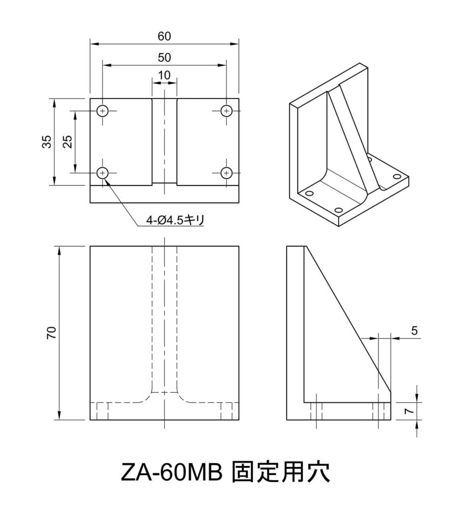 ・固定穴(底面)   :4-φ4.5キリ 25×50位置(M4ボルト用)
